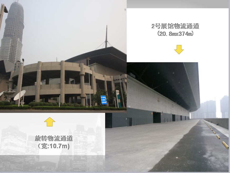 4.5萬(wàn)平方米室外停車(chē)場(chǎng),共設(shè)1800個(gè)停車(chē)位; 旋轉(zhuǎn)物流通道實(shí)現(xiàn)人流車(chē)流分流。