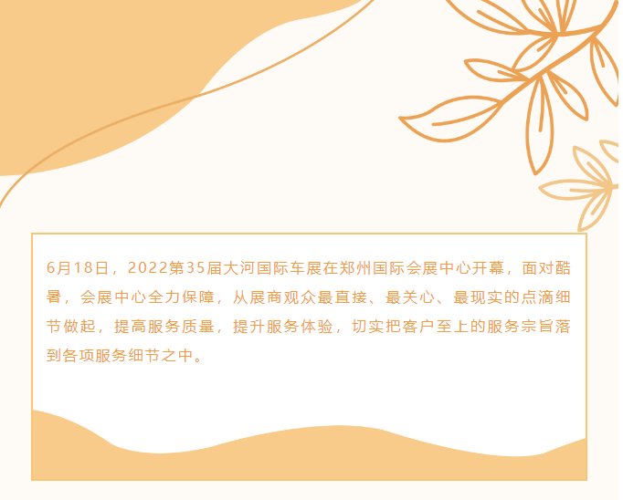 6月18日,2022第35屆大河國際車展在鄭州國際會展中心開幕,面對酷暑,會展中心全力保障,從展商觀眾最直接、最關心、最現(xiàn)實的點滴細節(jié)做起,提高服務質量,提升服務體驗,切實把客戶至上的服務宗旨落到各項服務細節(jié)之中。