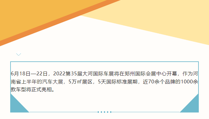 首頁新聞中心展會新聞文章詳情 文章詳情 第35屆大河國際車展即將開幕 6月18日—22日,2022第35屆大河國際車展將在鄭州國際會展中心開幕,作為河南省上半年的汽車大展,5萬㎡展區(qū),5天國際標(biāo)準(zhǔn)展期,近70余個品牌的1000余款車型將正式亮相。
