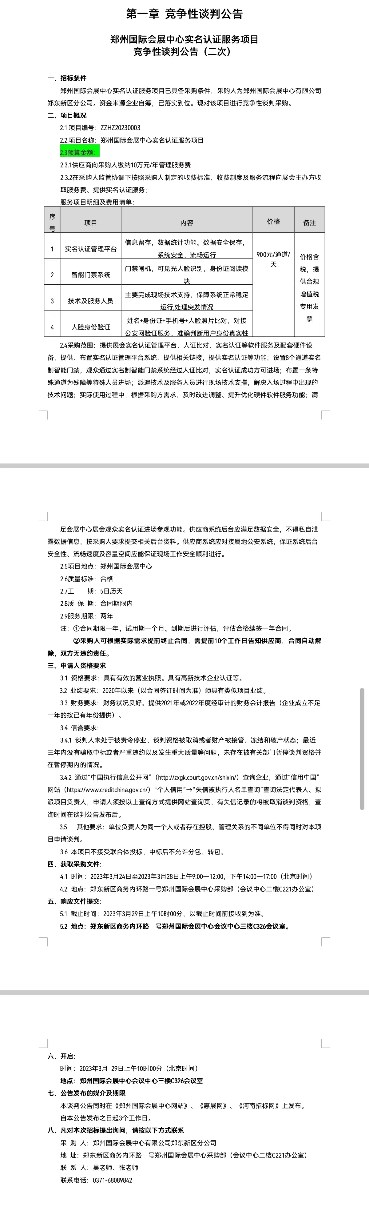 鄭州國際會展中心實名認證服務(wù)項目 競爭性談判公告(二次)