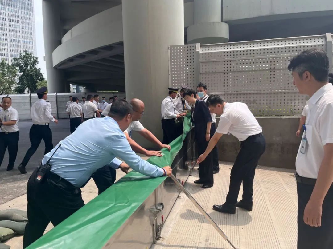 持續(xù)強降雨導致會議中心5-10號門出現(xiàn)積水且不斷上漲,公司根據(jù)汛情啟動Ⅱ級橙色應(yīng)急響應(yīng)。應(yīng)急隊員開展救援并用防洪板進行擋堵,工程保障部對附近區(qū)域電氣進行檢查,同時根據(jù)汛情及時關(guān)閉可能進水的設(shè)備設(shè)施。