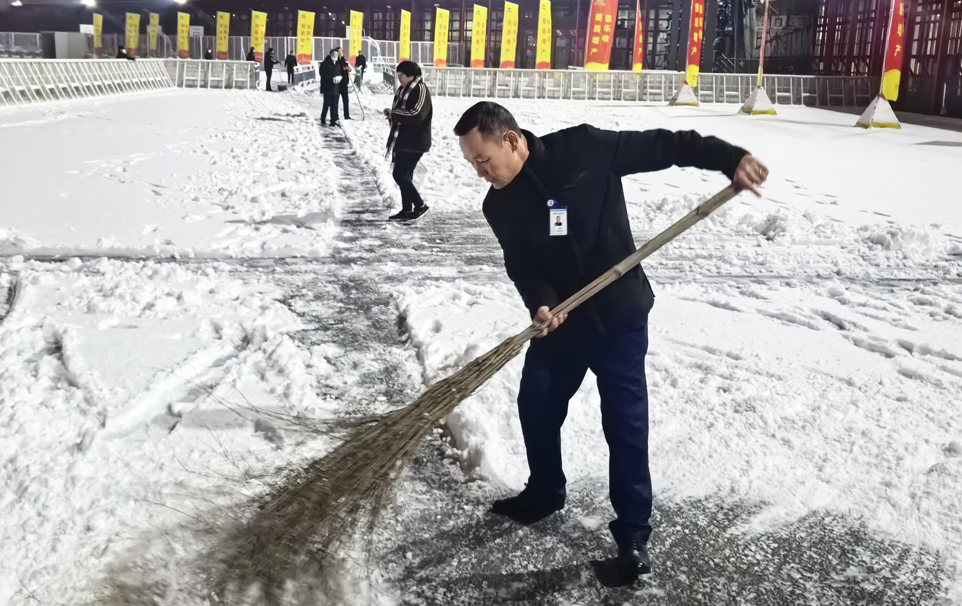會(huì)展中心員工及物業(yè)工作人員開展除雪保障工作