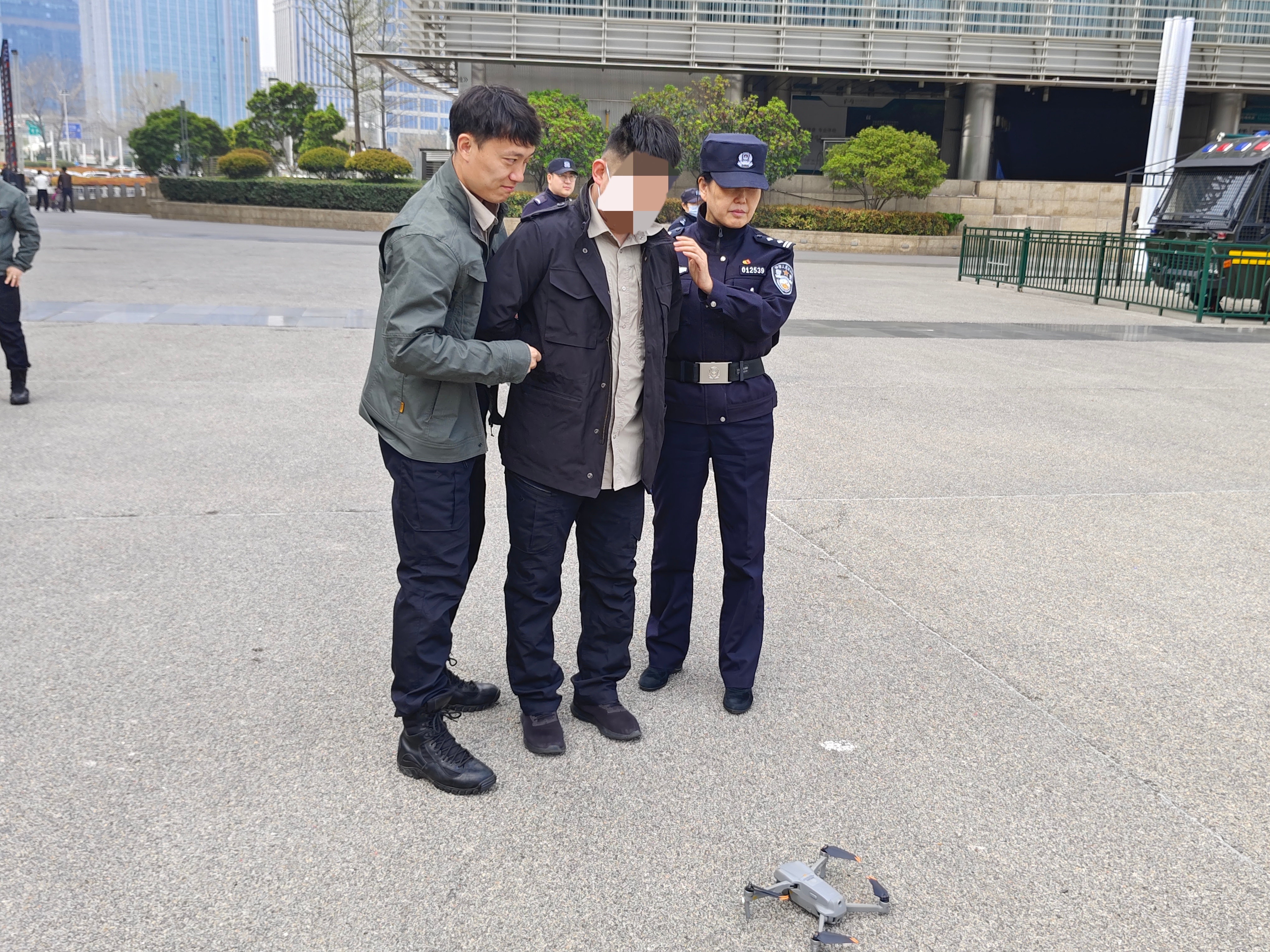 為保障市民及參會客商的人身、財(cái)產(chǎn)安全,給展館周邊營造安全的空域環(huán)境。3月26日,會展中心派出所、鄭州國際會展中心聯(lián)合開展無人機(jī)反制演練。