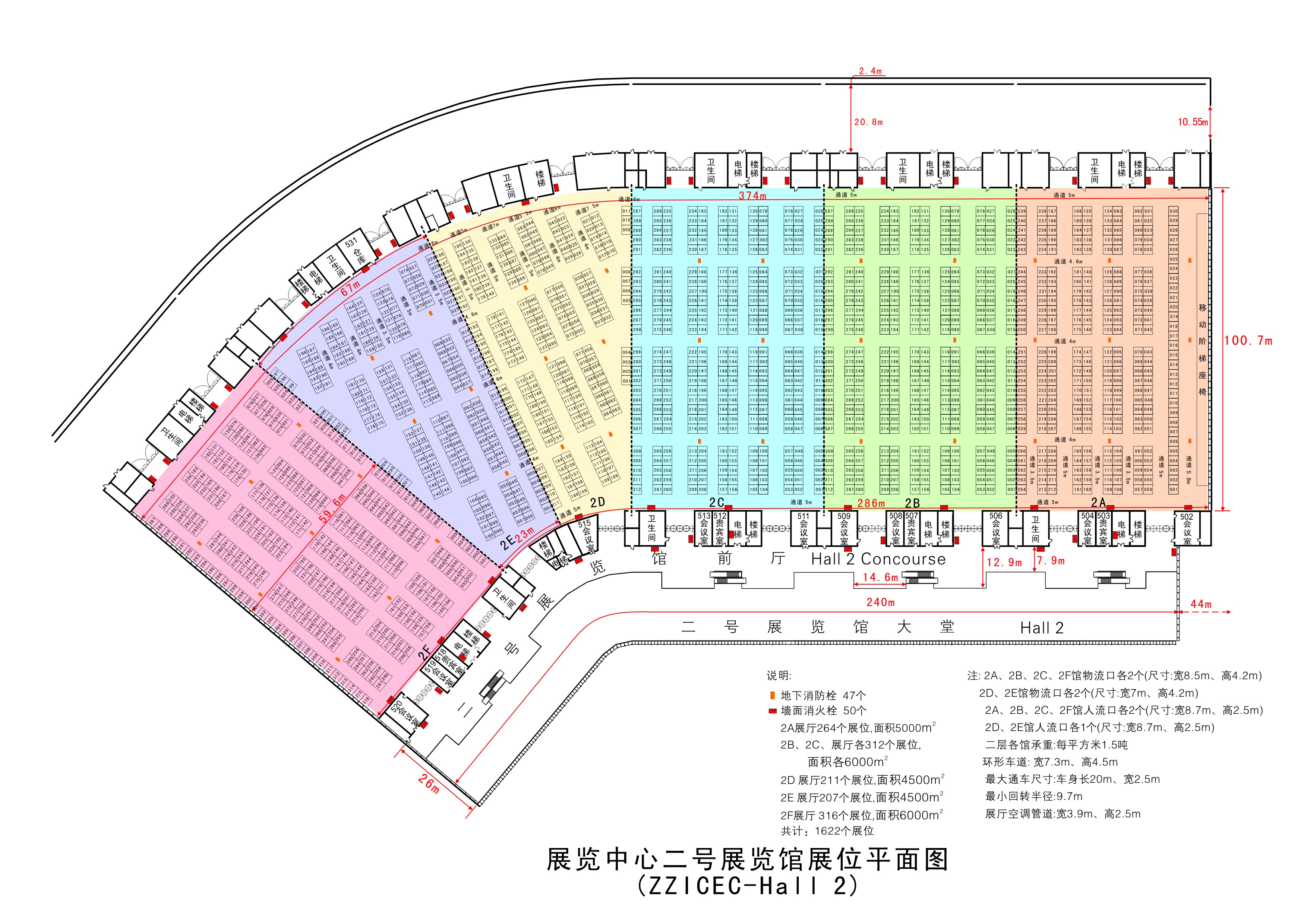 首頁展館介紹場館設施文章詳情 文章詳情 展覽中心平面圖及實景圖 1號展館3.3萬平方米,1772個標準展位,凈高14米,地面承重5噸/㎡; 2號展館 3.2萬平方米 ,1622個標準展位 ,凈高17.6米 地面承重1.5噸/㎡ ; 三層連廊(240mx26m),室外展場 3.8萬平方米, 停車場4.5萬平方米,設1800個停車位。